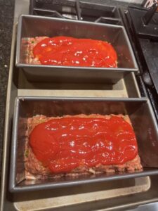 • Place loaves in pans and cover with ketchup evenly divided between loaves.